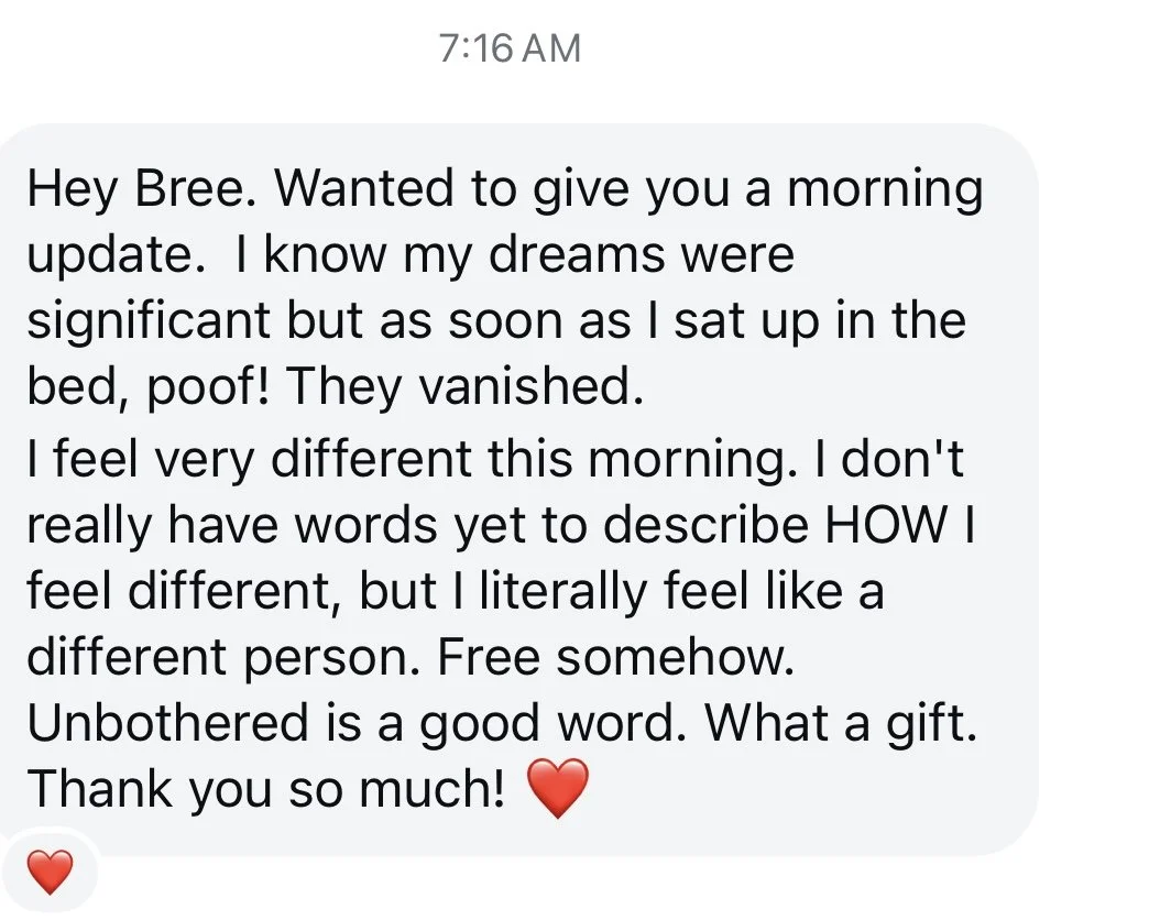 Bree does not believe in a cookie cutter approach to hypnotherapy as each person’s story is beautifully unique. With each client, she creates unique treatment plans based on their goals, background and personalities.
